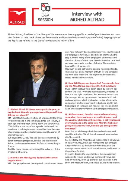 Mohed Altrad, President of the Group of the same name, has engaged in an end of year interview. An occasion for him to take stock of the last few months and look to the future with peace of mind, keeping sight of the key issues related to the Group’s cohesion and raison d’être.